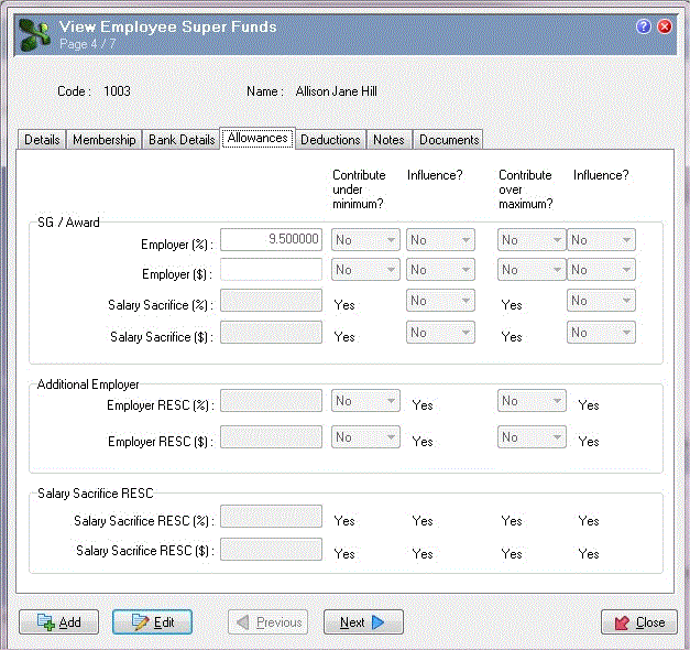 Employee Super Funds and Superannuation Fund Allowance values