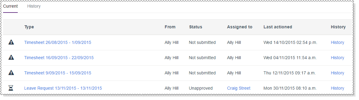 Active Items is like an inbox that displays items that are currently in the system, such as leave requests.