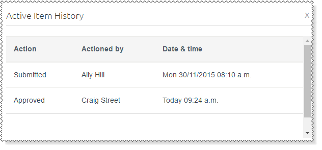 Use Active Items to monitor the progress of workflow items that you have submitted. An icon is displayed beside each workflow item to show the status of the item.